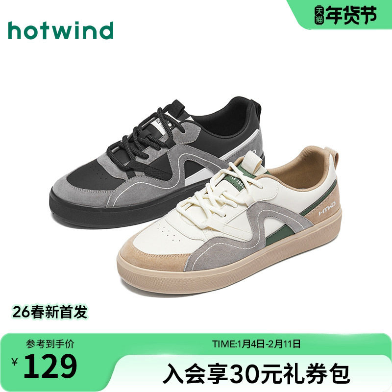 热风男鞋2026年春季新款男士时尚休闲鞋平底板鞋运动户外小白鞋子