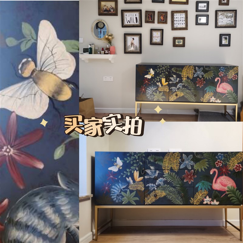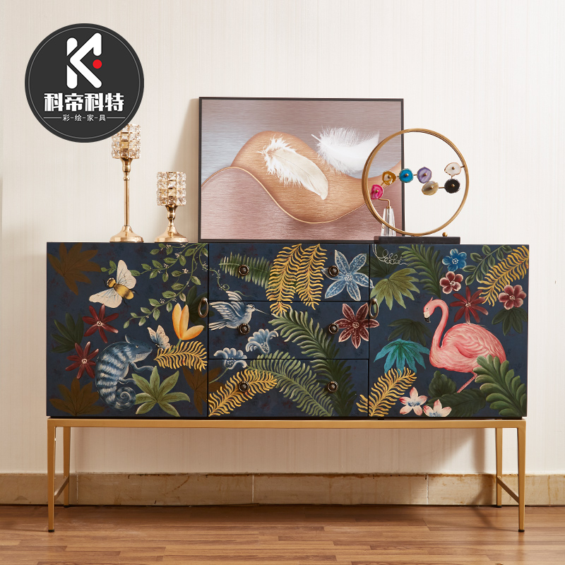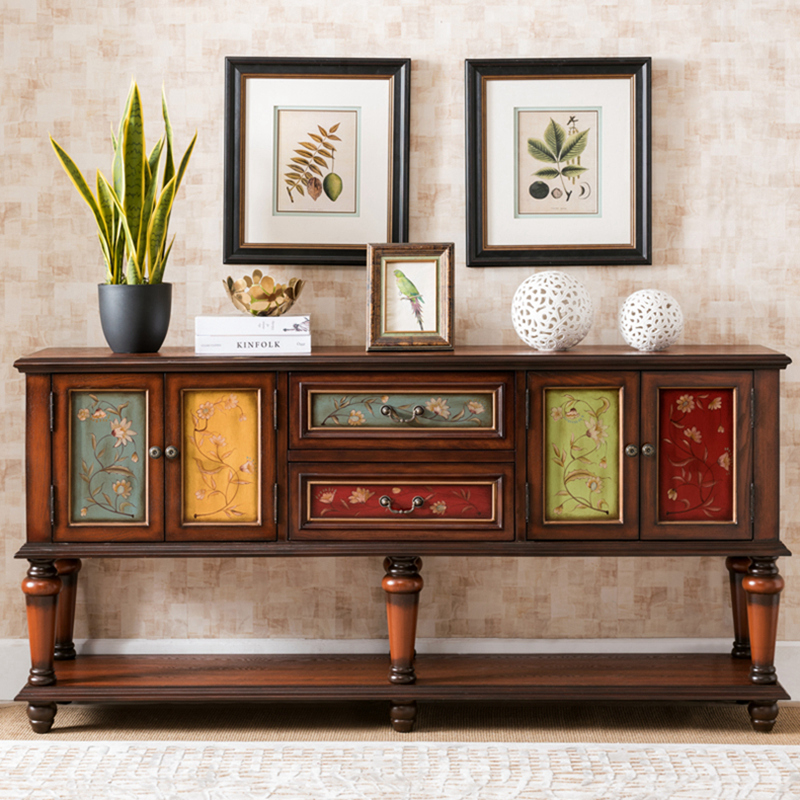 设计师款美式乡村餐边柜客厅实木进门玄关柜储物柜复古彩绘装饰柜