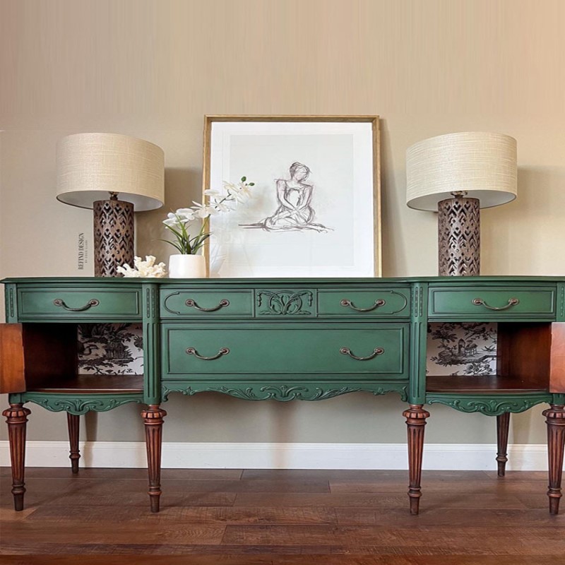 瑞诗欧美式乡村餐边柜实木高柜靠墙厨房置物架酒柜一体复古绿家具