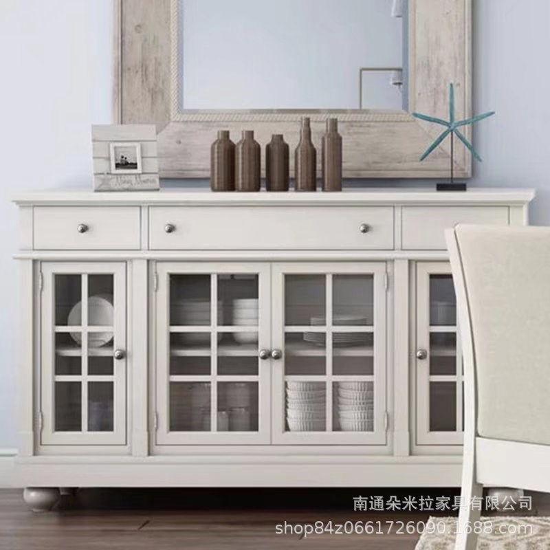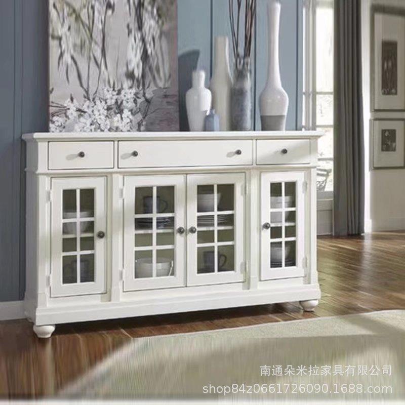 美式乡村餐边柜 小户型餐厅收纳柜透气玄关柜 欧式厨房实木碗蝶柜