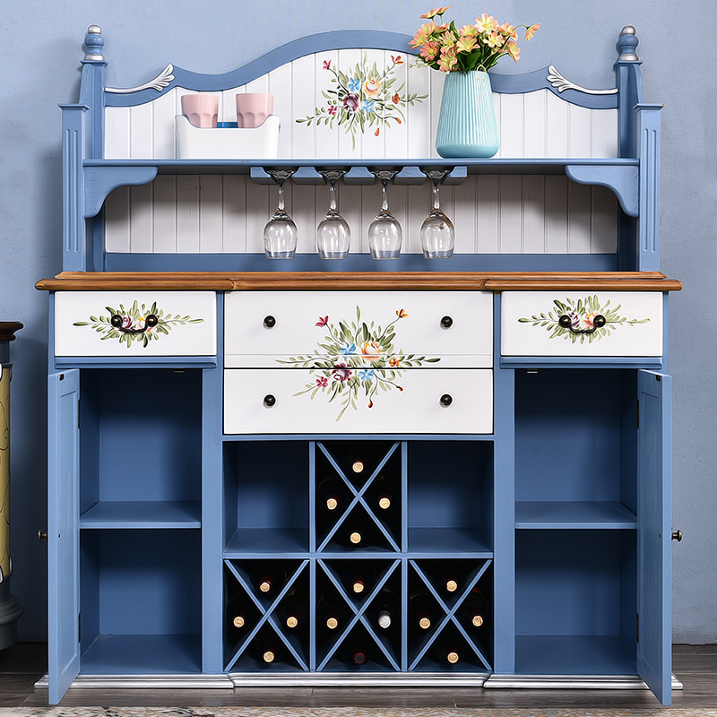美式地中海全实木餐边柜田园储物柜子乡村餐客厅简约茶水碗柜酒柜