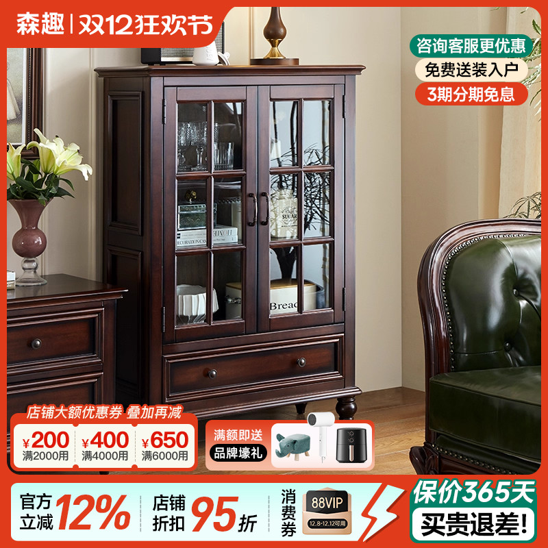 森趣美式乡村实木餐边柜酒柜一体靠墙边几茶水柜客厅储物柜矮柜子