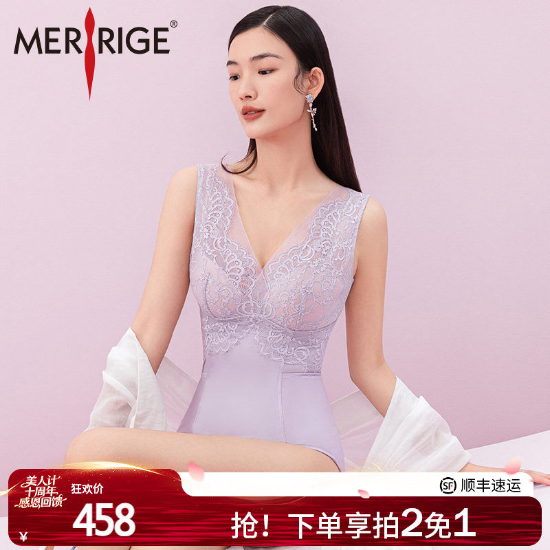 美人计|塑身塑形 收腹提臀美背蕾丝V领美体衣女后脱|merrige官方