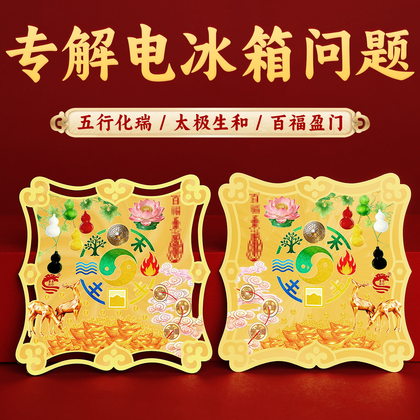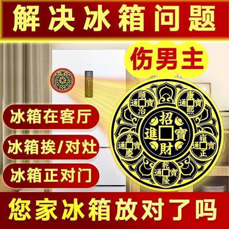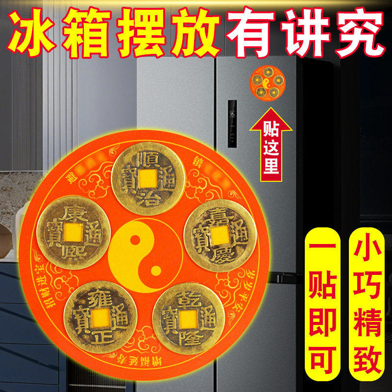 招财进宝五帝钱金属贴化解冰箱在客厅冰箱对灶台门对门冰箱金属贴
