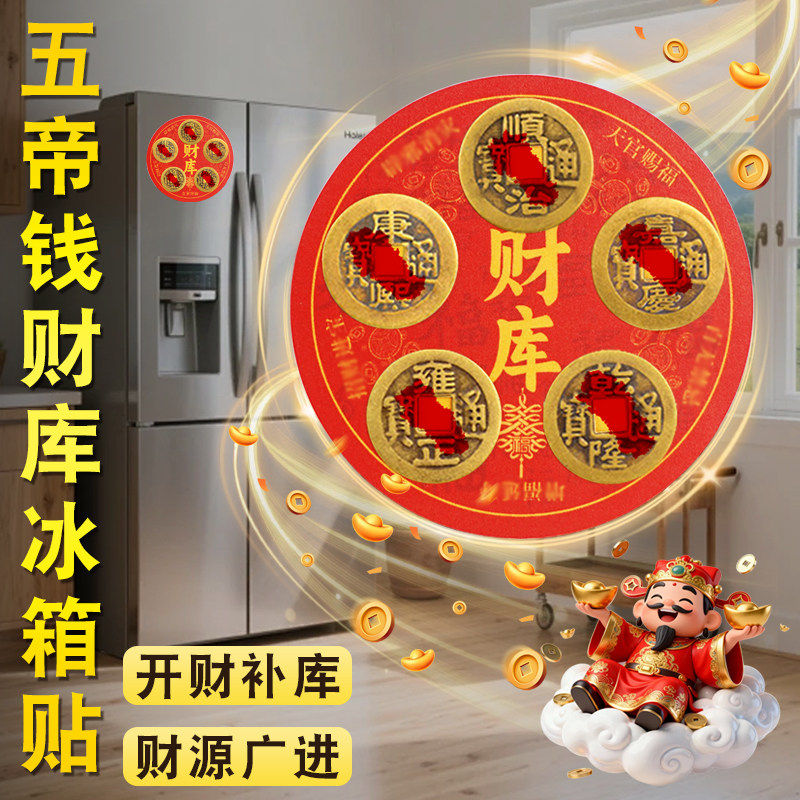 五帝钱财库冰箱贴磁吸解决冰箱门对门专用新款铜钱磁吸冰箱贴家用