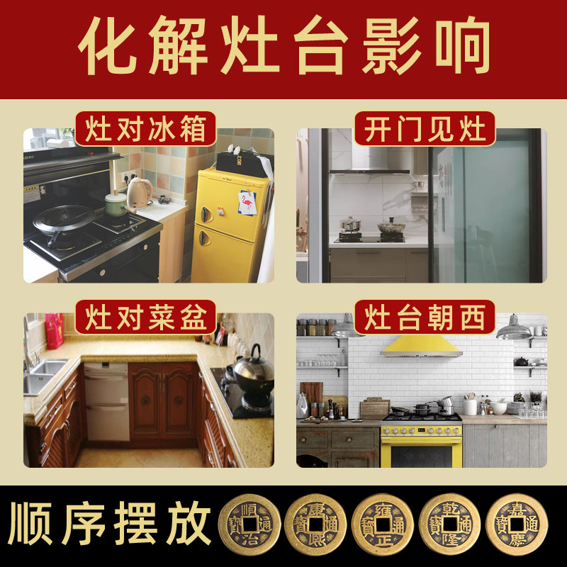 灶台朝西化解开门见灶对门菜盘厨房水龙头挂件炉灶对冰箱铜五帝钱