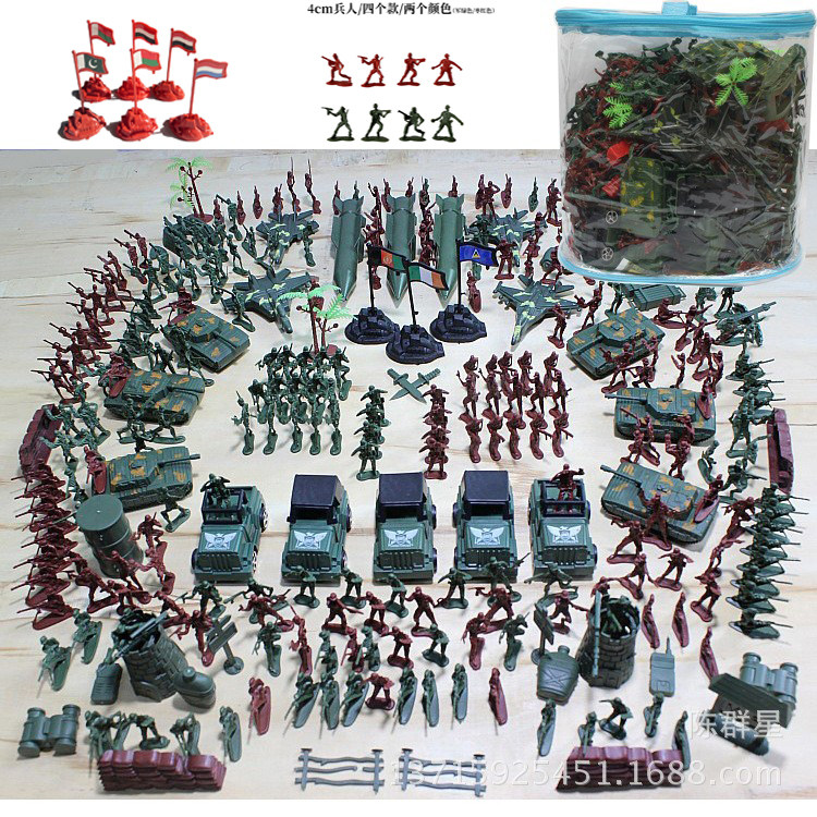 包邮307件兵人套装4cm小兵人仿真二战模型军事沙盘场景儿童玩具