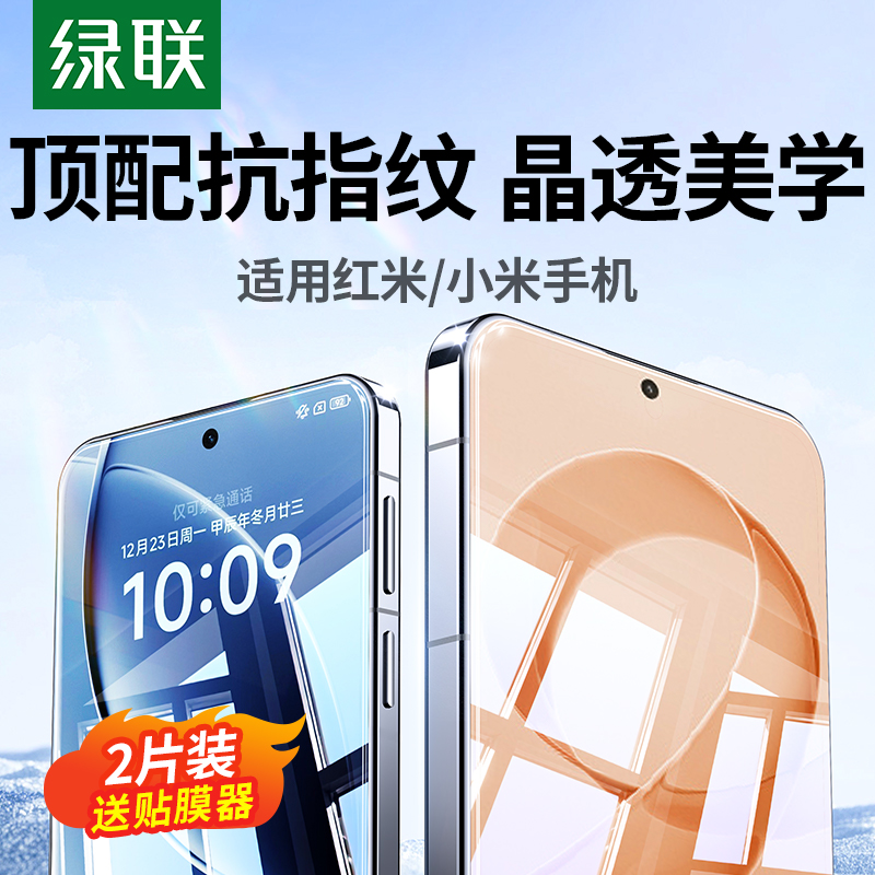 绿联适用小米17Pro钢化膜红米K80手机膜防爆小米14无尘秒膜15超声波秒解17高清xiaomi13/K80至尊版turbo4保护