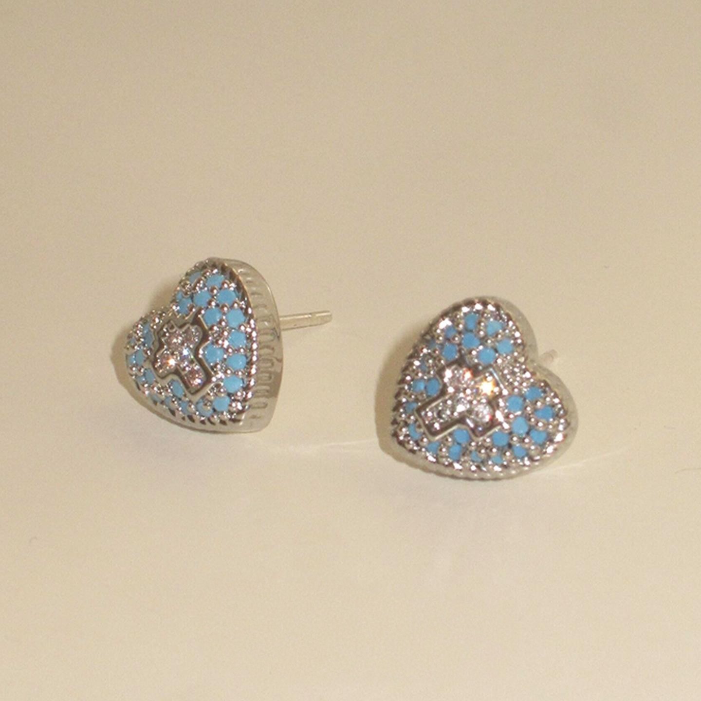 Vintage中古仿蓝松石满钻爱心十字架耳钉甜酷个性超闪y2k独特耳饰