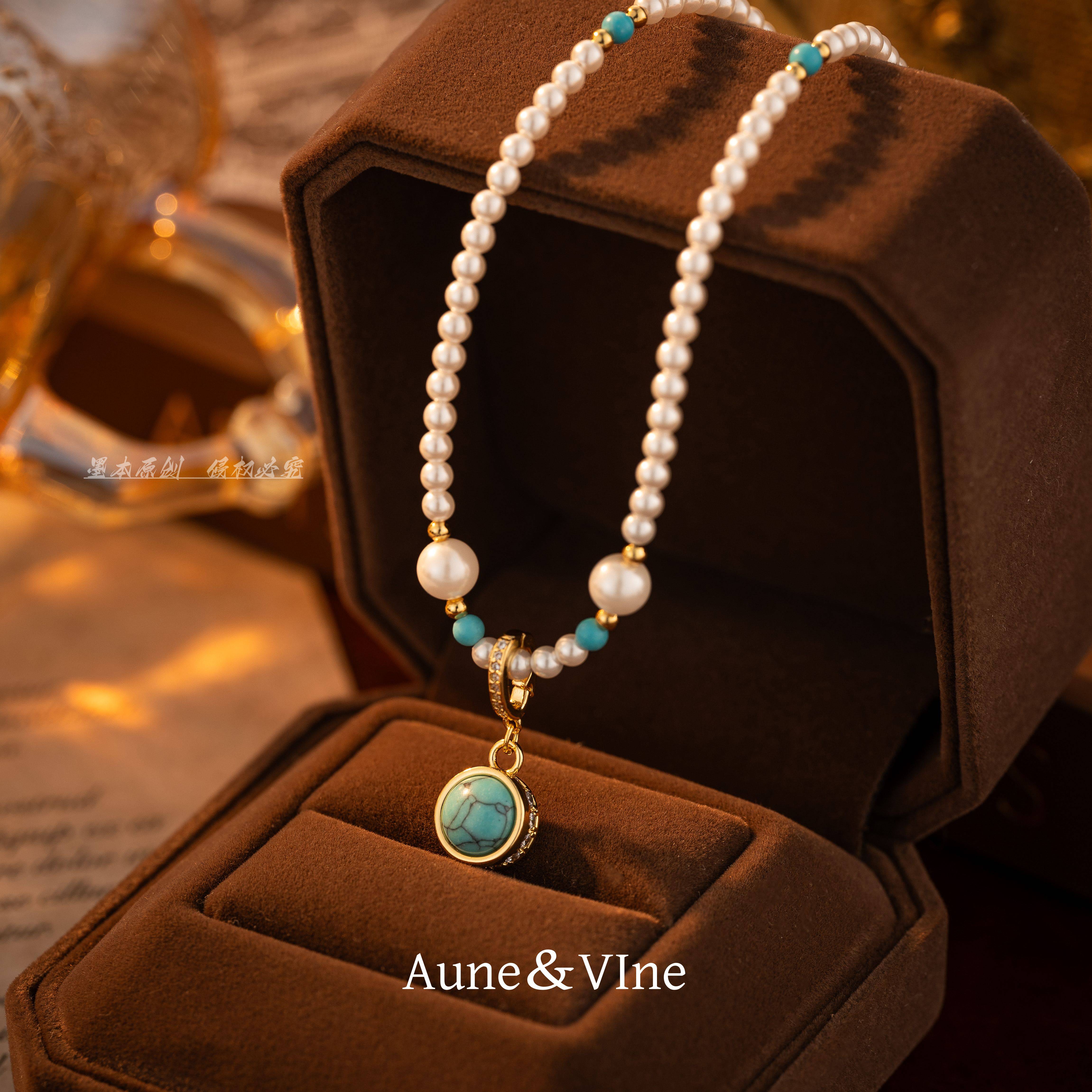 新中式绿松石项链黄金吊坠百搭挂链万能链可拆卸小米珠长款毛衣链