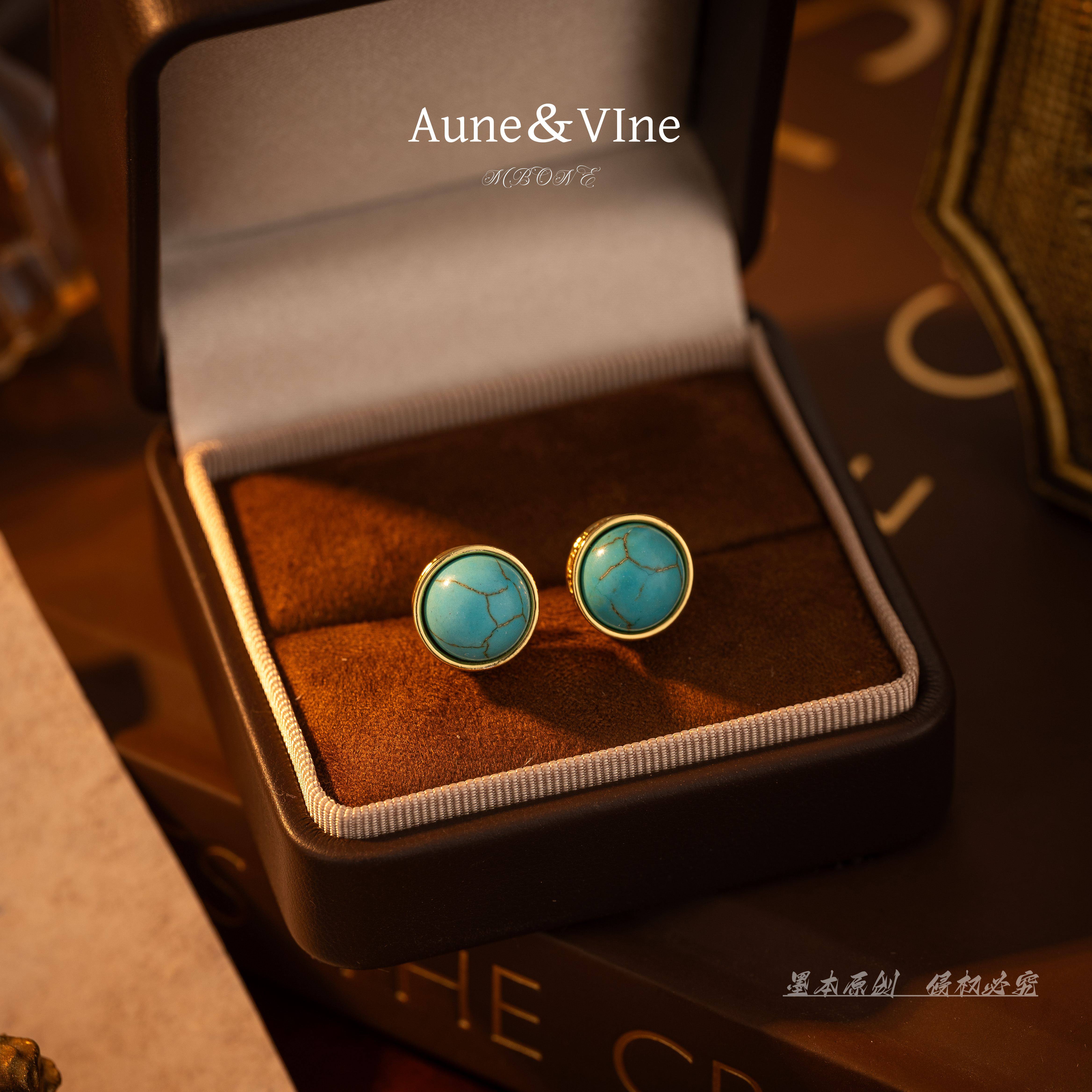 蜜蜂妈手作绿松石星芒双面耳钉女复古高级感精致个性日常耳饰秋冬