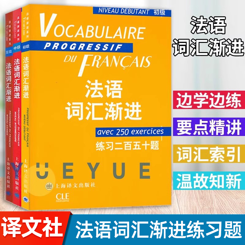法语词汇渐进初级 练习二百五十题 法语教学配套教材 法语学生学习书籍 自学法语入门教材 循序渐进法语单词词汇书籍 上海译文出版