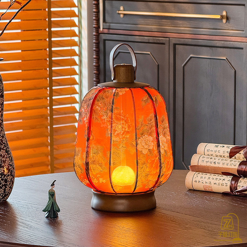 宋代美学国画绣花实木台灯中式高级美感布艺氛围节庆送礼装饰台灯