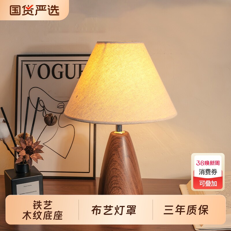 新中式简约现代实木台灯卧室床头灯温馨家用书桌中古氛围民宿调光
