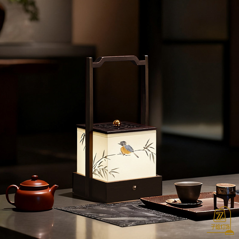 宋式美学中式复古风实木台灯茶室禅意手绘氛围装饰台灯卧室床头灯