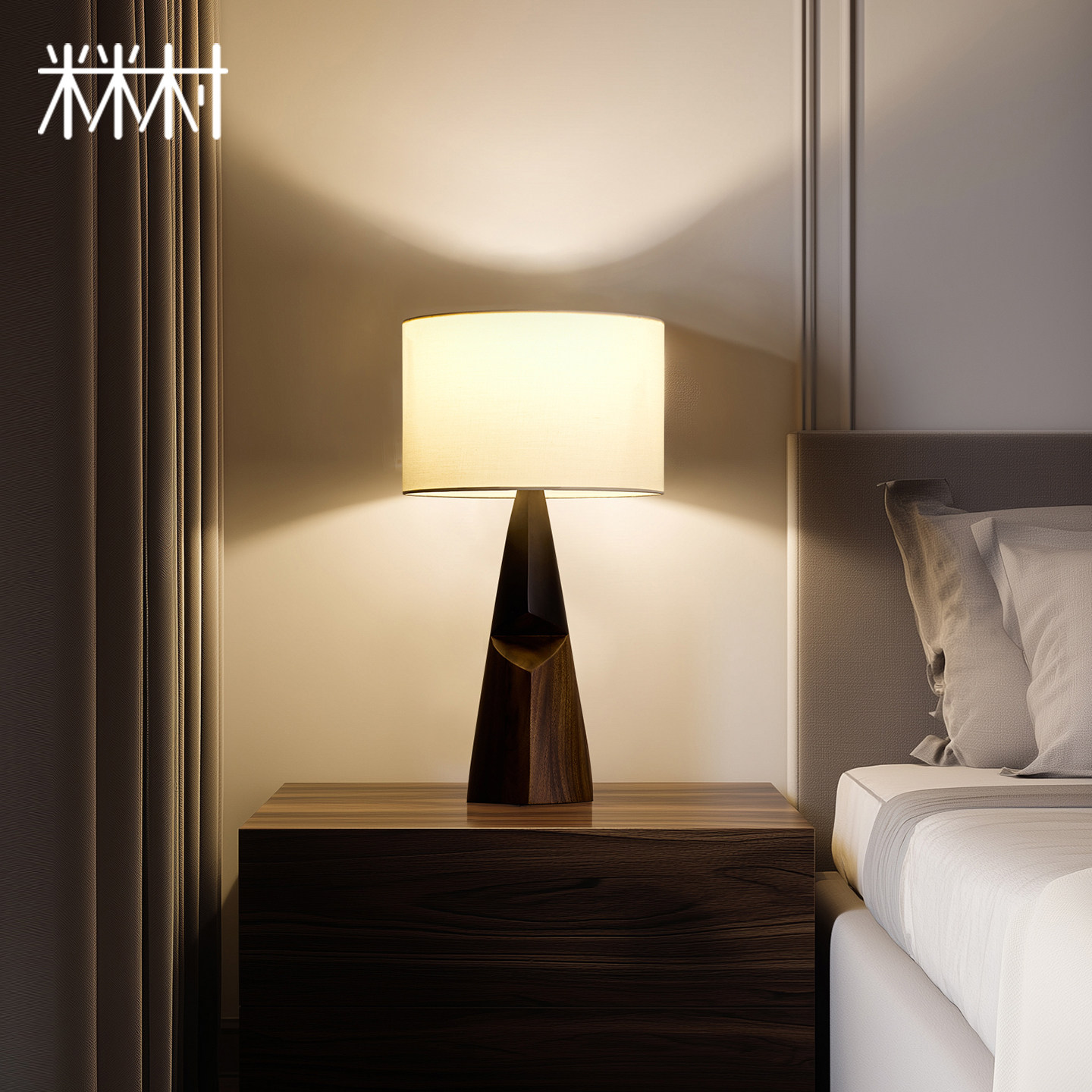 侘寂风极简实木台灯设计师款胡桃木色灯饰客厅书房卧室床头氛围灯