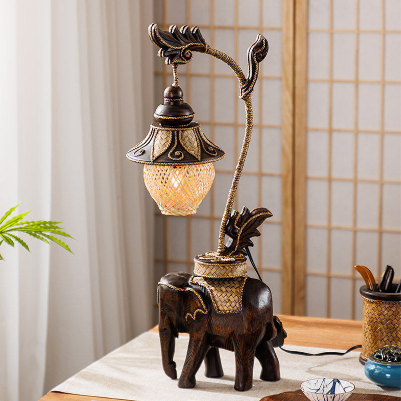 泰国实木台灯卧室床头灯创意温馨竹编灯大象复古泰式摆件装饰灯具