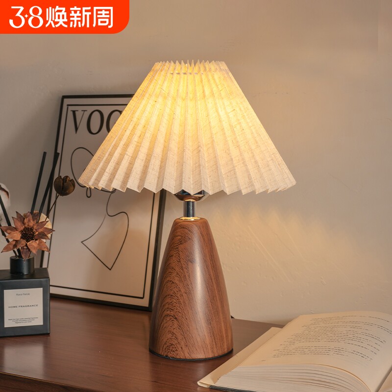 台灯床头灯卧室百褶复古实木书房起夜夜灯温馨浪漫桌面装饰氛围感