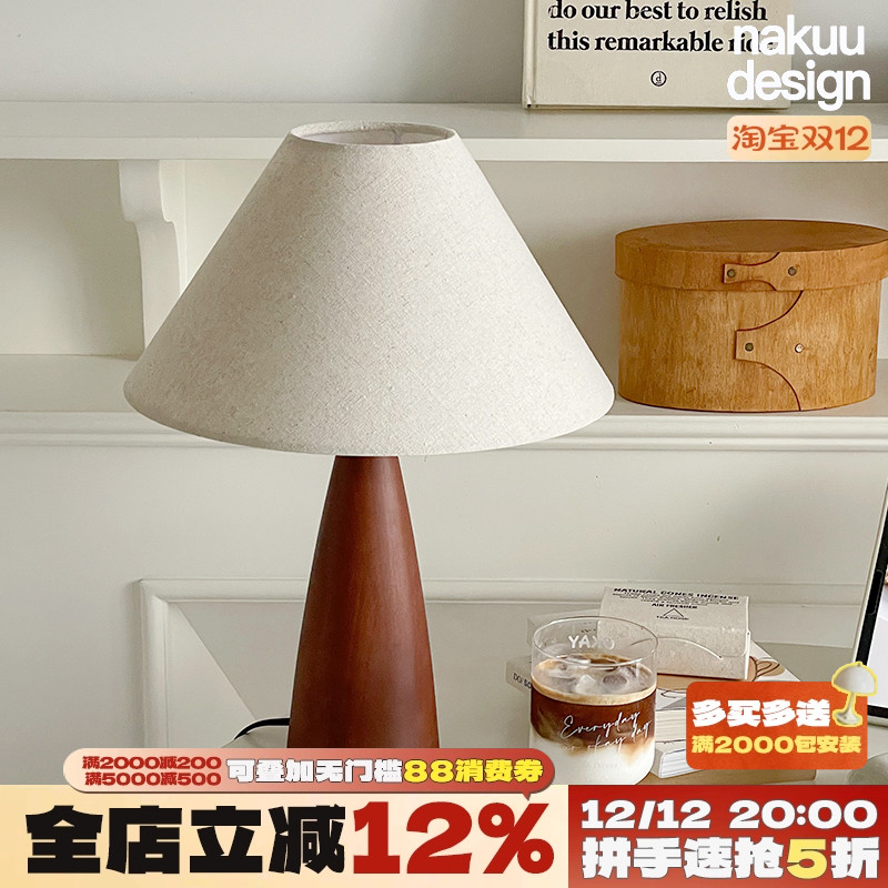 侘寂风实木台灯设计师中古创意灯饰高级感客厅卧室氛围实木床头灯