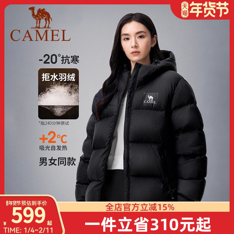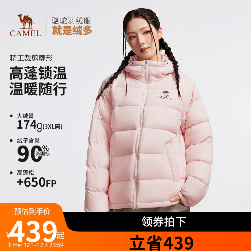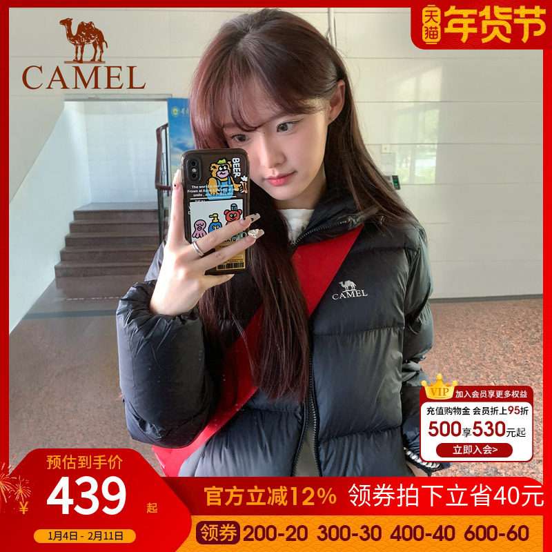 【小红书同款】骆驼户外羽绒服女冬季新款连帽短黑色男加厚面包服