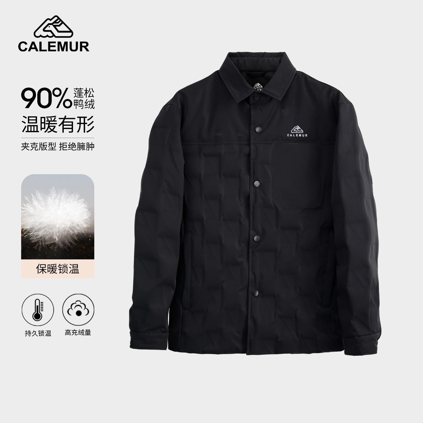 凯莱牧户外羽绒服女2025衬衫领轻薄白鸭绒保暖羽绒夹克短款外套男