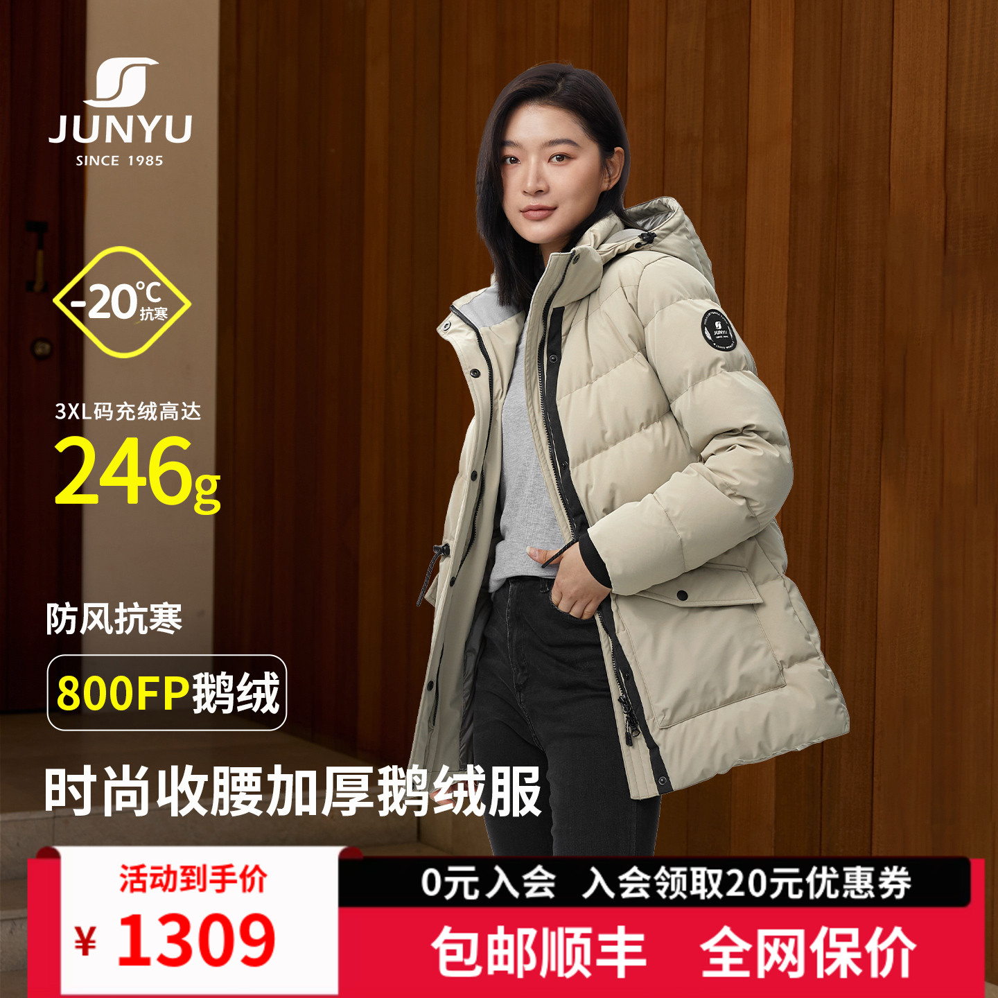 【800蓬白鹅绒】君羽户外羽绒服女中长款冬季加厚保暖连帽鹅绒服