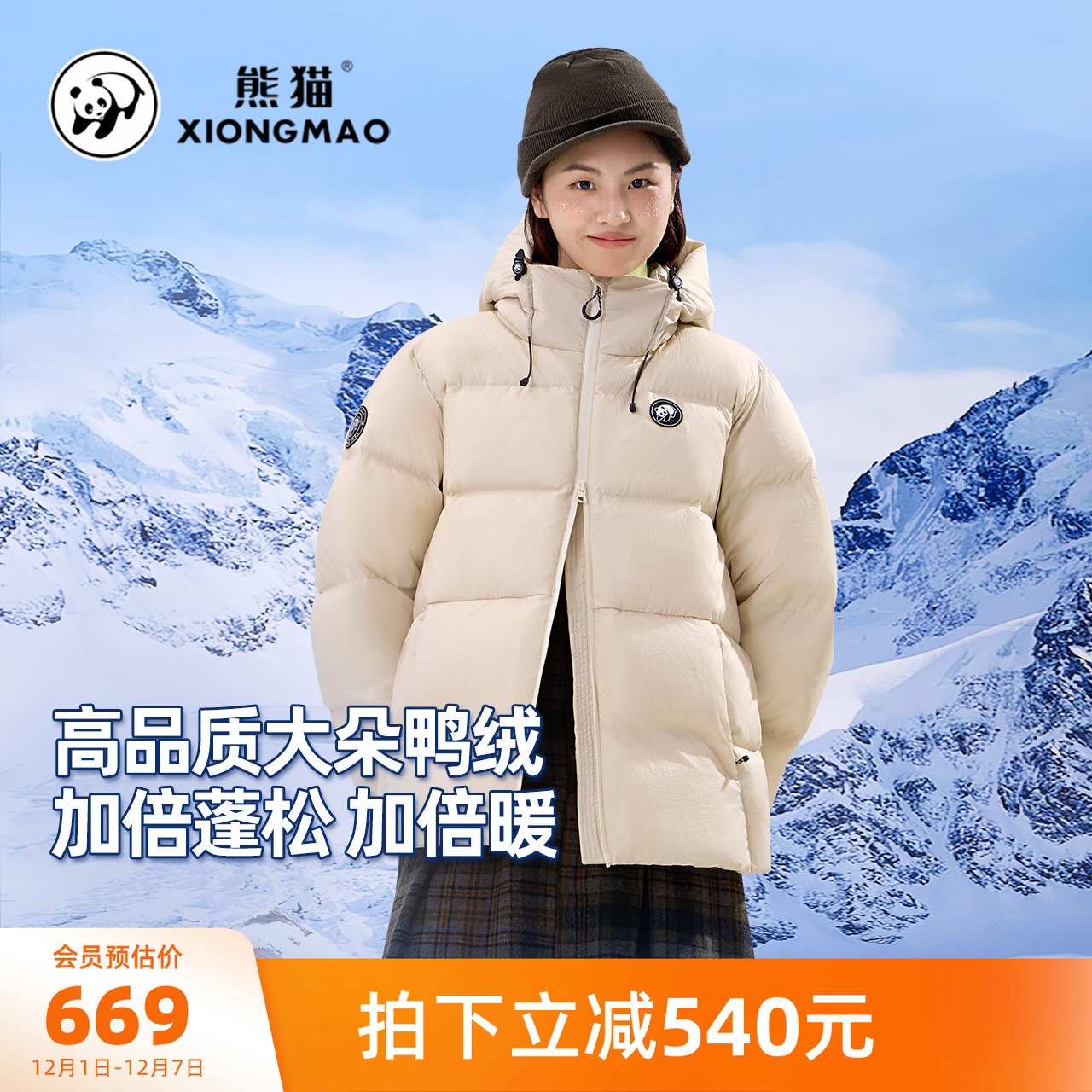 张予曦同款熊猫户外羽绒服2025新款高蓬90鸭绒面包服外套女双面穿