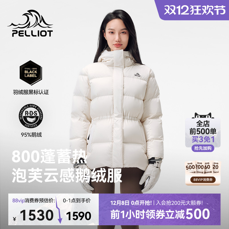 【800蓬鹅绒】伯希和户外羽绒服女款保暖收腰防风黑色滑雪服外套