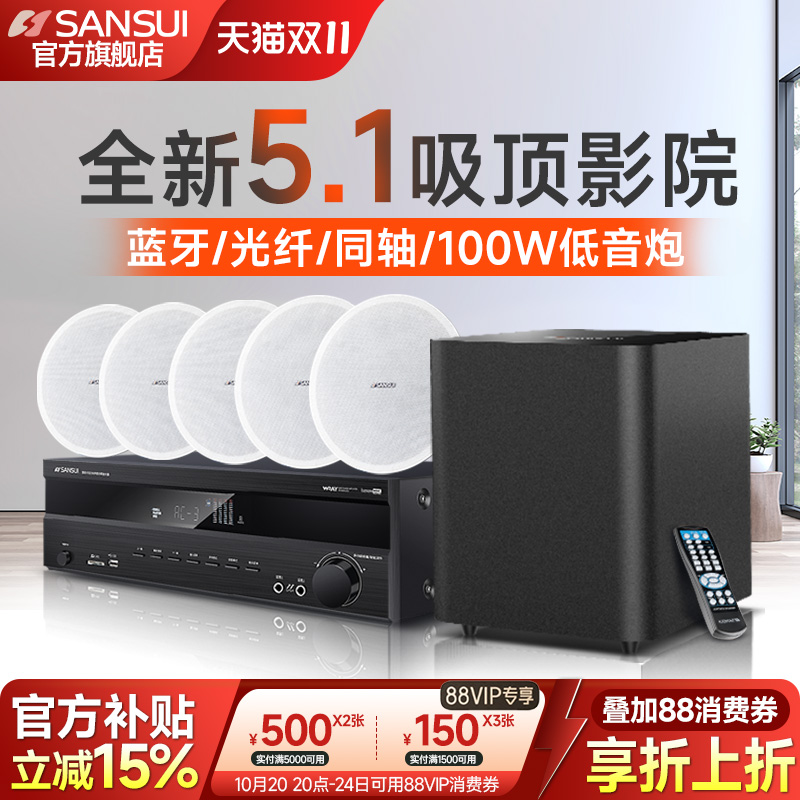 山水吸顶音响5.1家庭影院家用ktv吊顶音响功放套装高端蓝牙嵌入式