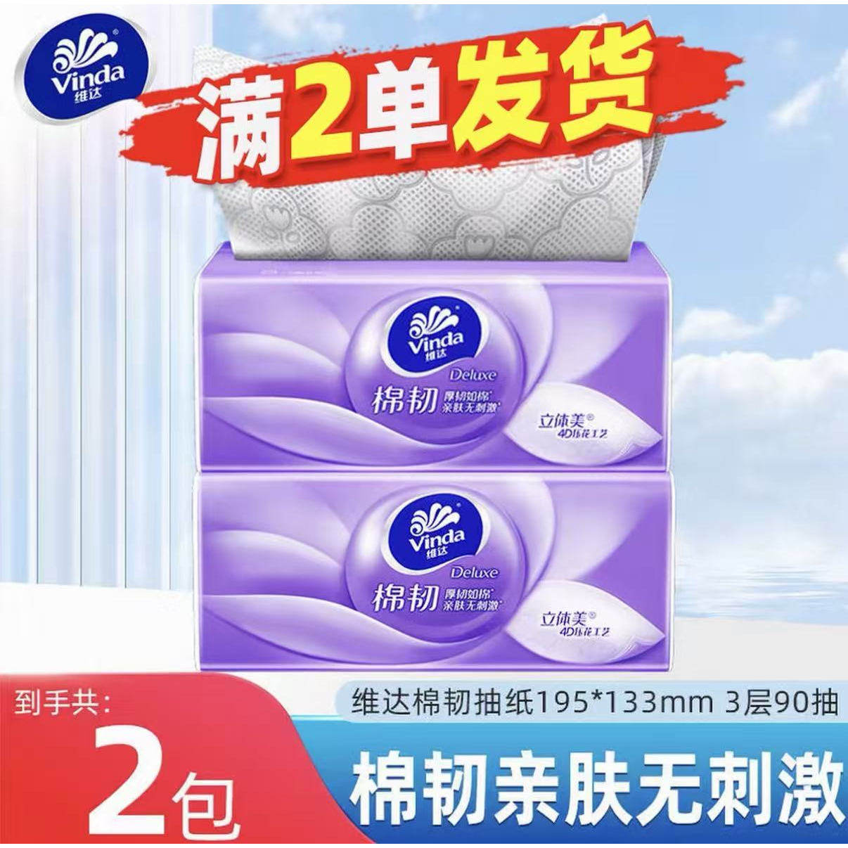 维达棉韧抽纸90抽抽取式家用2元包邮抽取式餐巾纸面巾纸柔肤纸巾Z