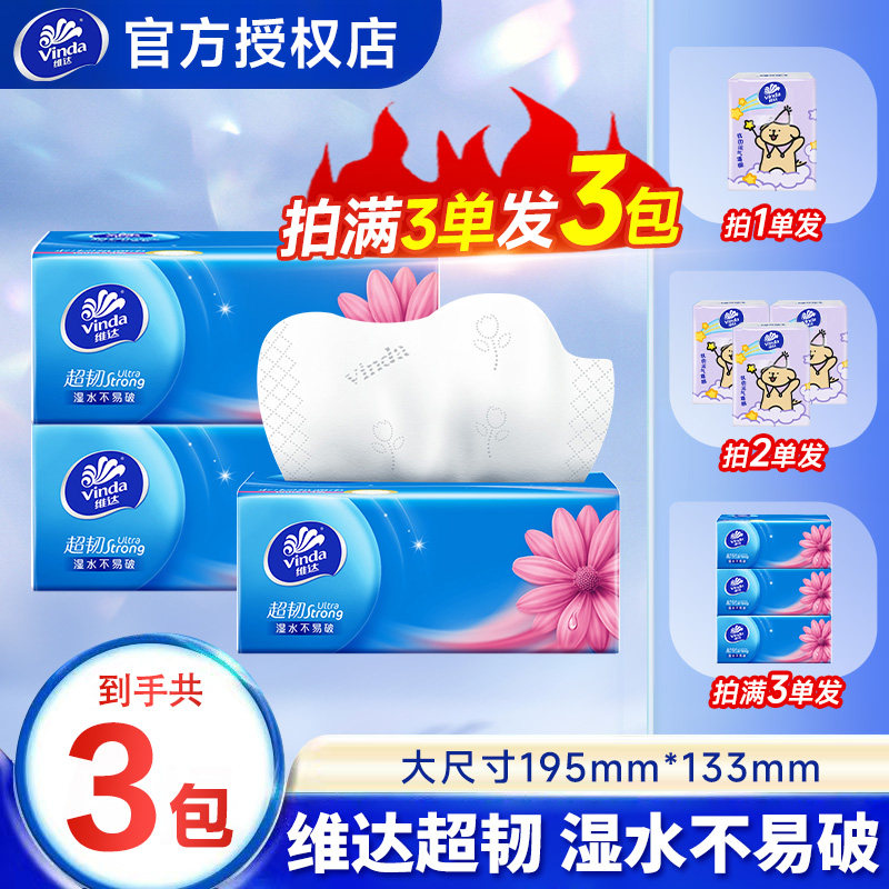 维达超韧抽纸120抽大包纸巾2元加厚实惠装家用餐巾纸抽满3包发货Z