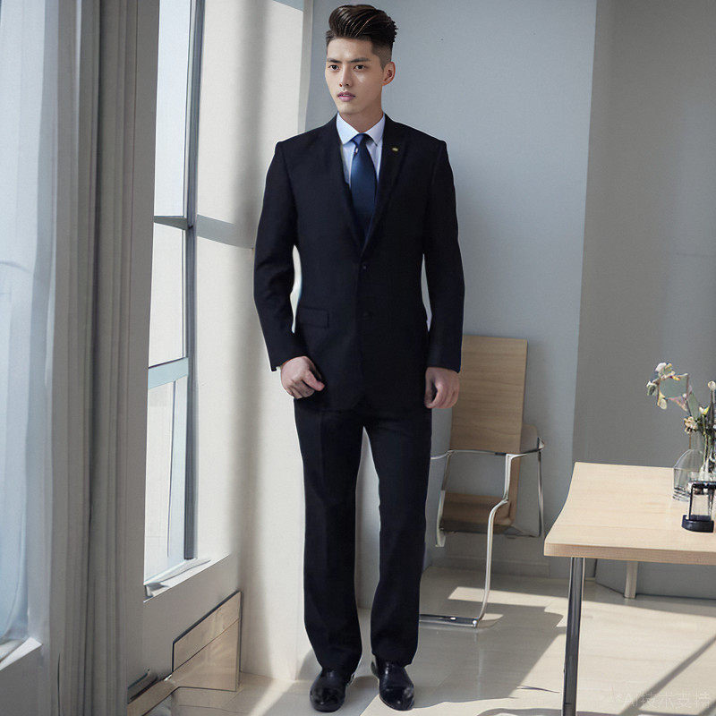 两件套男士休闲西服修身两粒扣小西装商务职业正装青年套装职业装