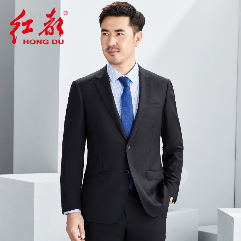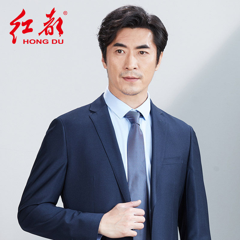 红都西装套装男士青年商务职业装结婚伴郎服蓝黑色上班正装西服男