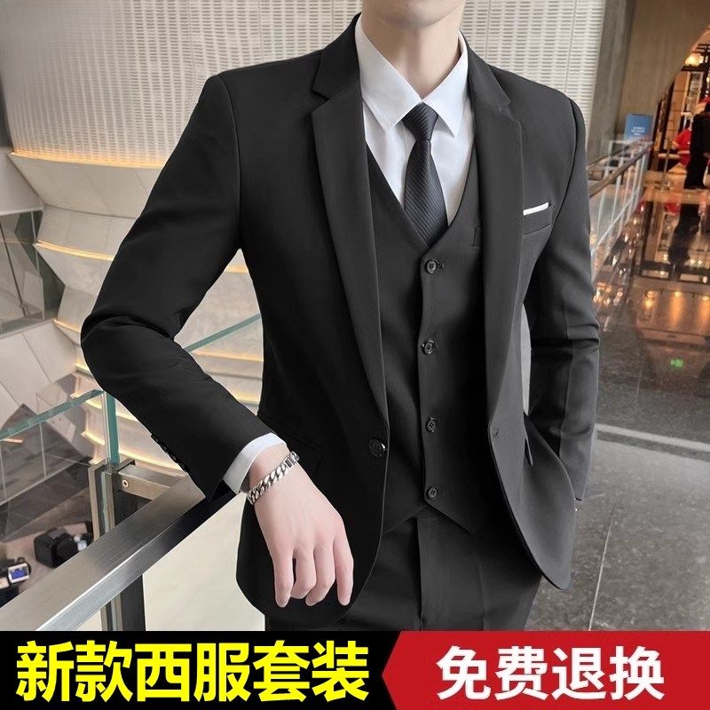 西装套装职业正装男士小西装三件套韩版修身青年帅气休闲西服上衣