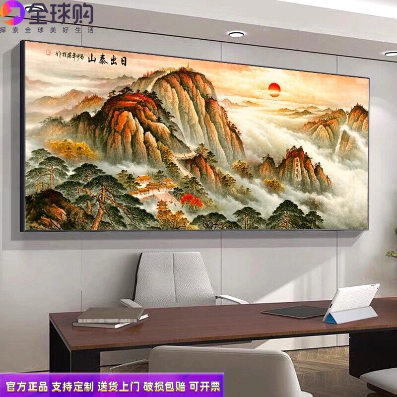 有山无水靠山图泰山日出挂画客厅背景山水风景画办公室国画装饰画