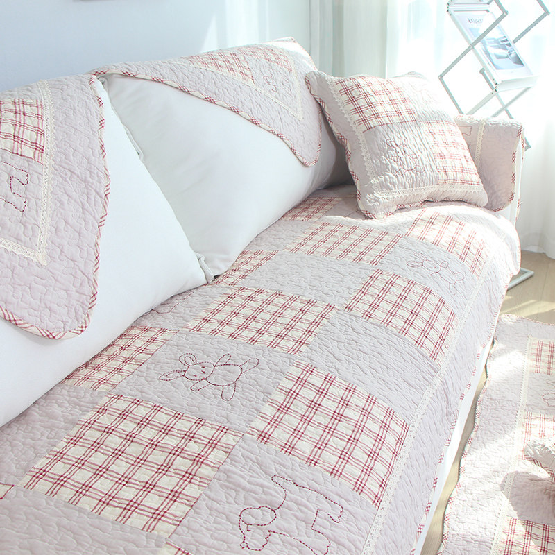 纯棉布艺四季通用卡通小兔全棉防滑沙发垫简约现代组合坐垫靠背巾