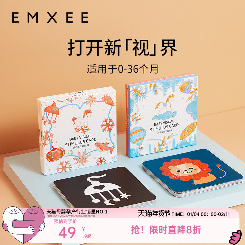 英氏黑白卡片婴儿早教卡宝宝彩色视觉激发卡0到3个月追视闪卡玩具