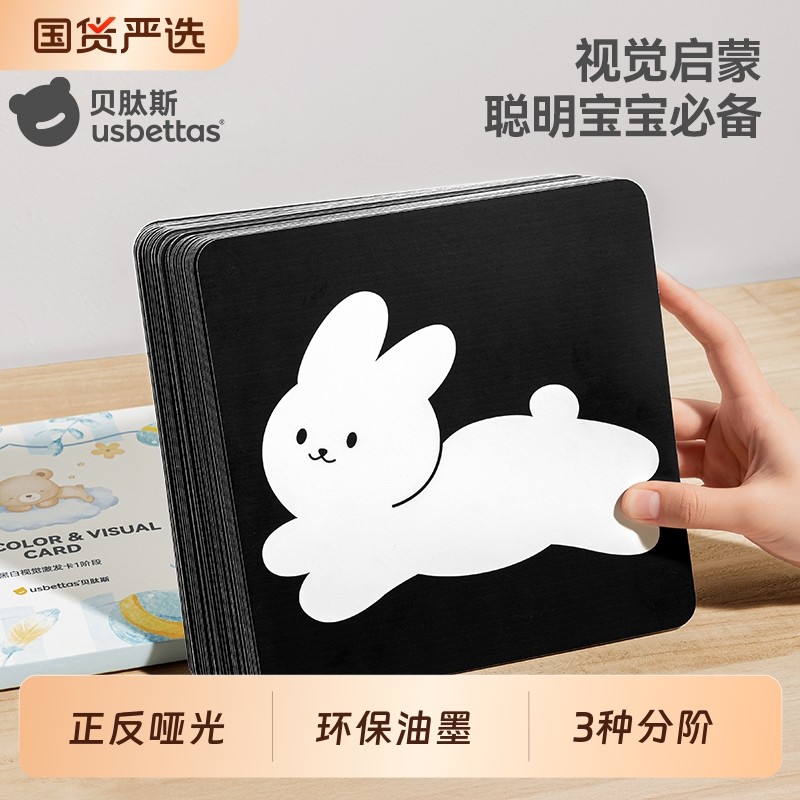 贝肽斯黑白卡片婴儿早教卡新生的儿视觉激发0到3个月宝宝彩色玩具