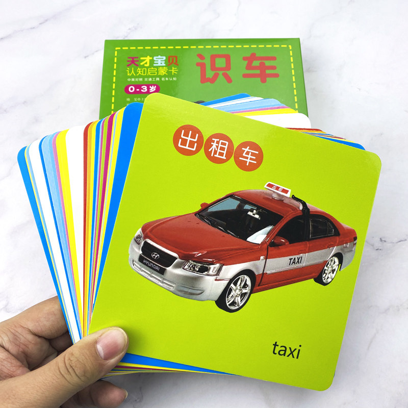 正版0-1-2-3岁儿童小孩彩图识车大卡 早教书加厚覆膜宝宝认汽车卡片交通工具婴儿卡片早教认知卡1一周岁半到两2幼儿园学前儿童图画