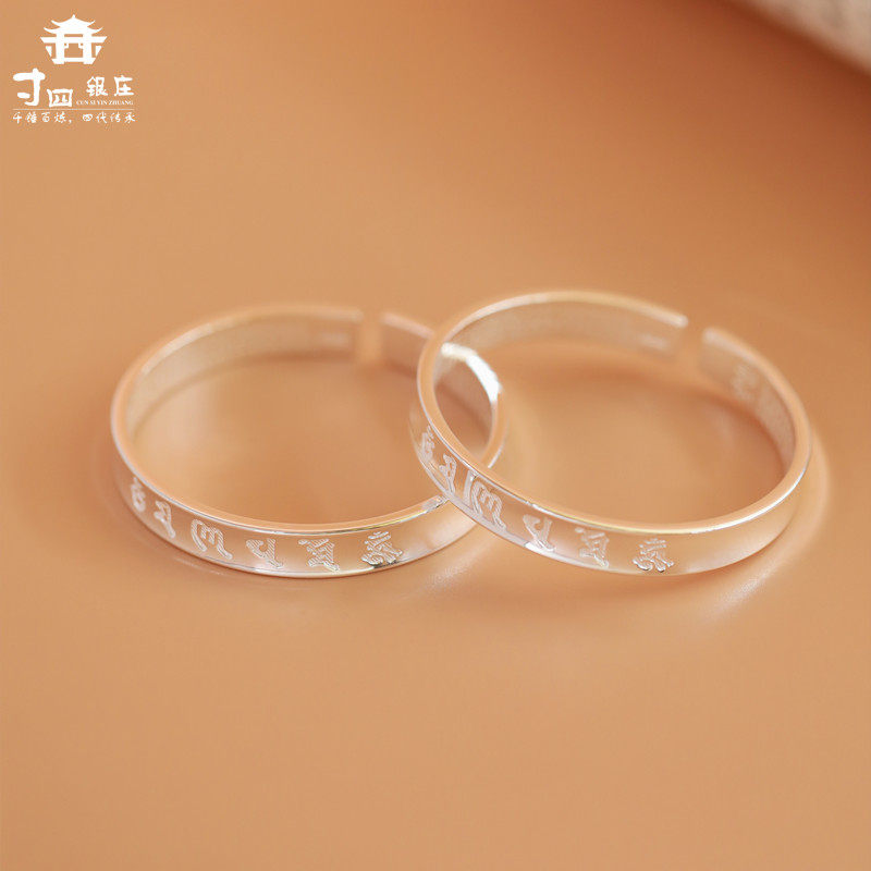 祥银居云南雪花银莫比乌斯心经手镯 男女情侣银手镯手工精雕.传家
