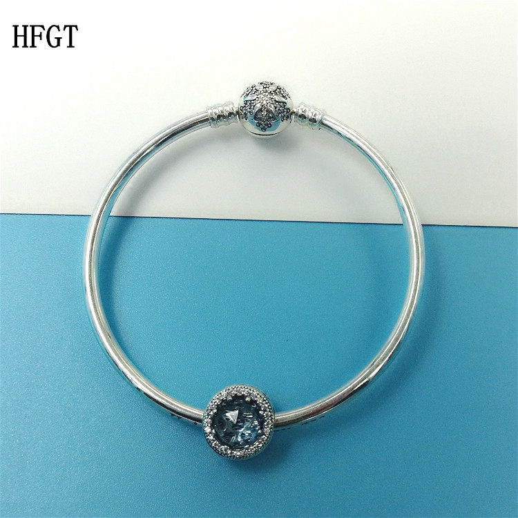 HFGT925纯银海洋之心蓝色珠子雪花手镯女串珠手链女朋友时尚个性
