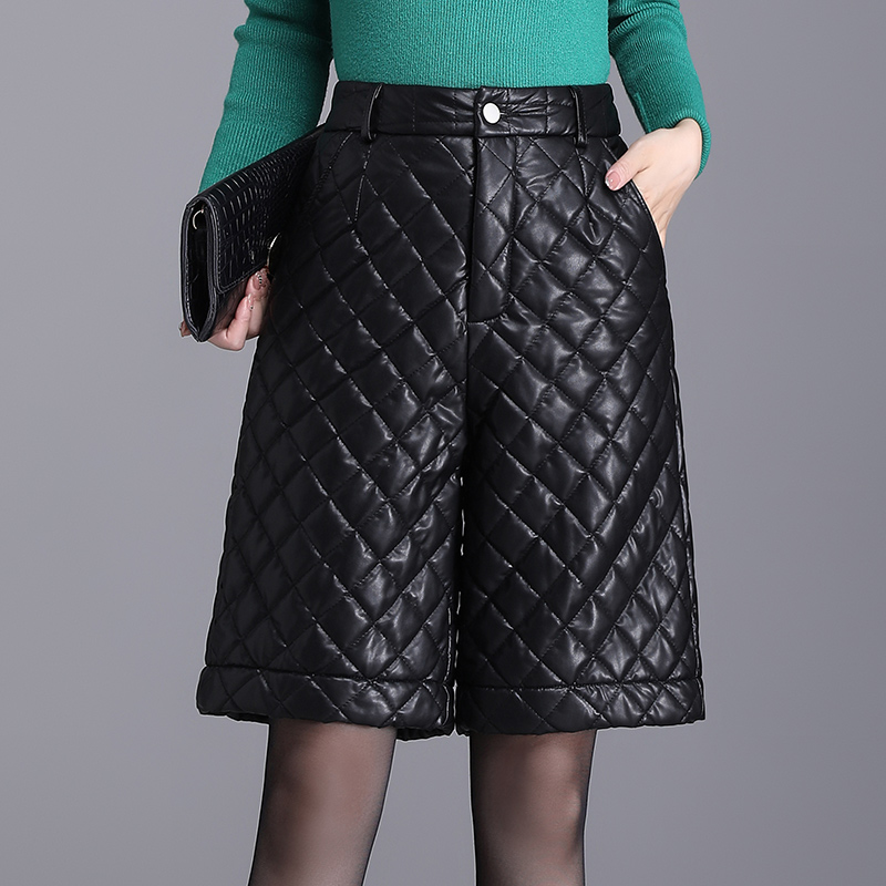 黑色皮短裤女秋冬外穿2025加厚新款宽松阔腿a字显瘦高腰打底靴裤