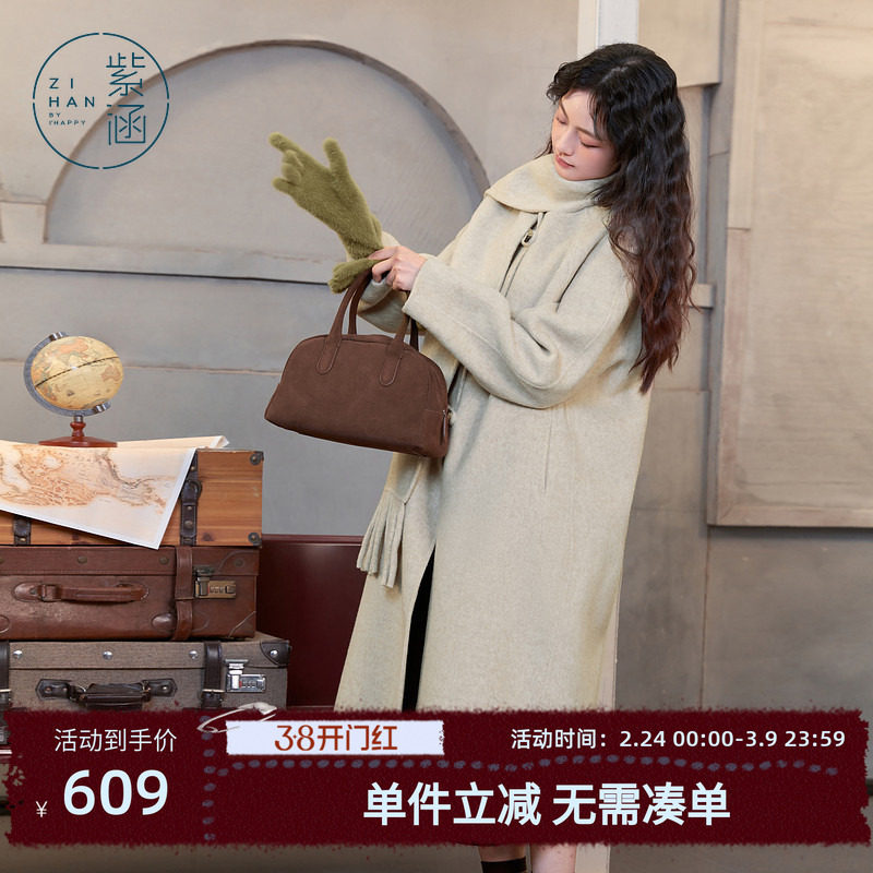 - 双面绒大衣中长款女