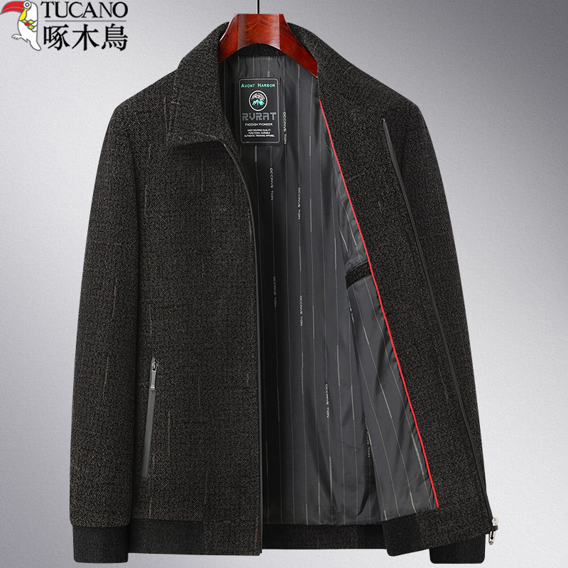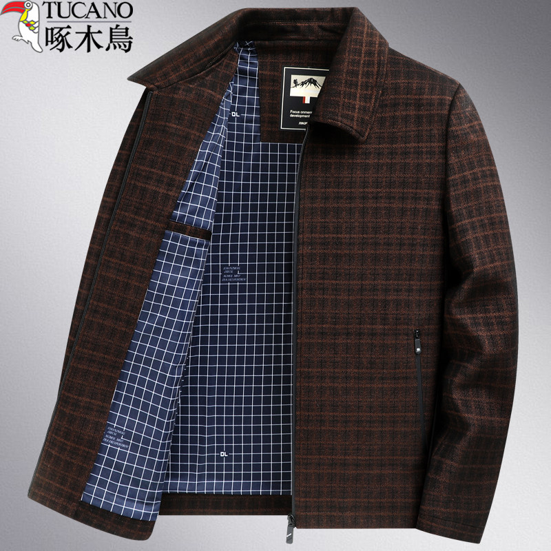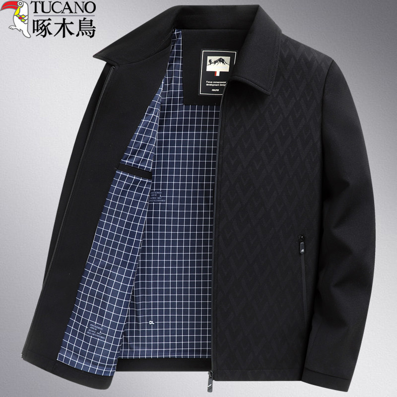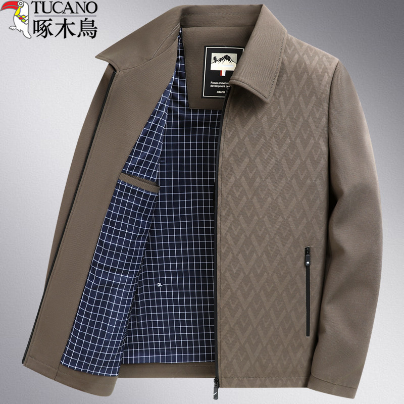 啄木鸟秋冬装薄款男士夹克中老年男装夹克翻领夹克中年外套爸爸装