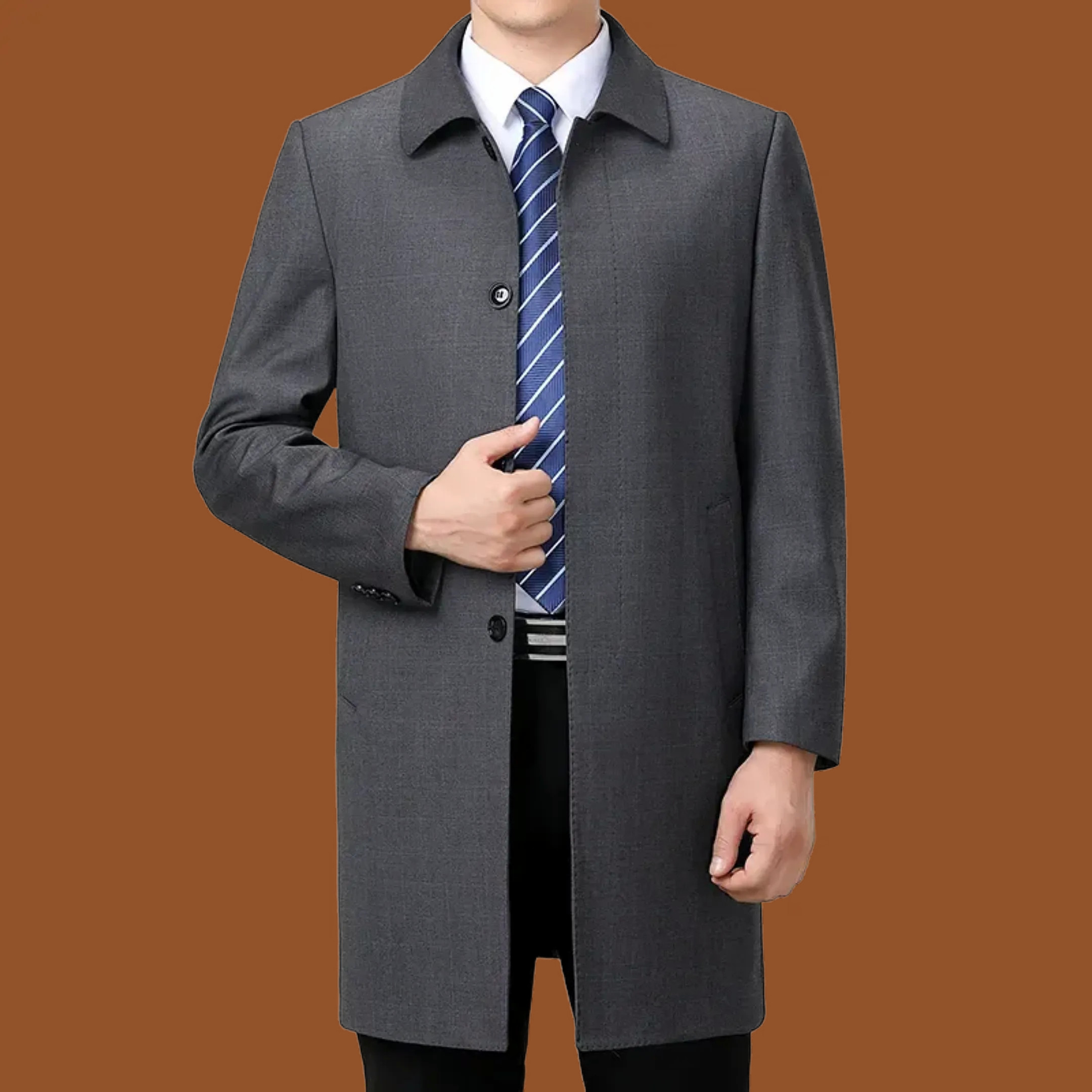 狄斯仑商务风男士羊毛中长款风衣春秋季休闲外套中年薄款翻领夹克