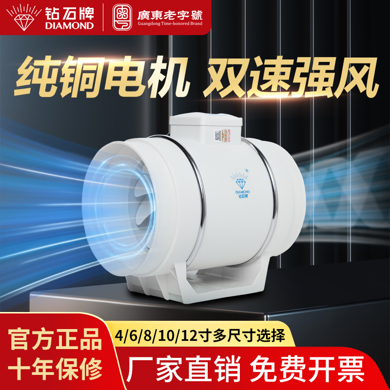 钻石牌管道风机强力静音换气扇卫生间工业抽风机增压厨房排气风扇