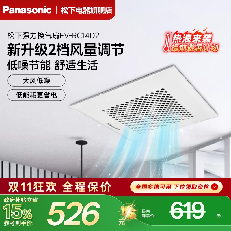 松下排气扇抽风机强力静音厨房管道换气扇卫生间厕所大吸力排风扇
