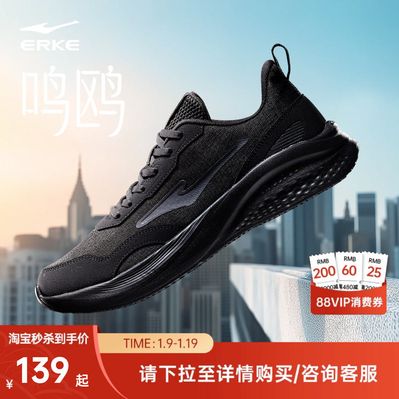 鸣鸥鸿星尔克男鞋运动鞋冬季新款软底休闲跑鞋黑色跑步鞋男士鞋子