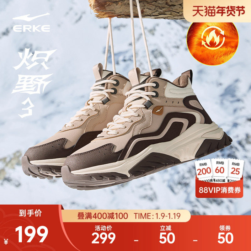 鸿星尔克炽野男鞋冬季中高帮大棉鞋保暖北方加厚加绒雪地靴运动鞋