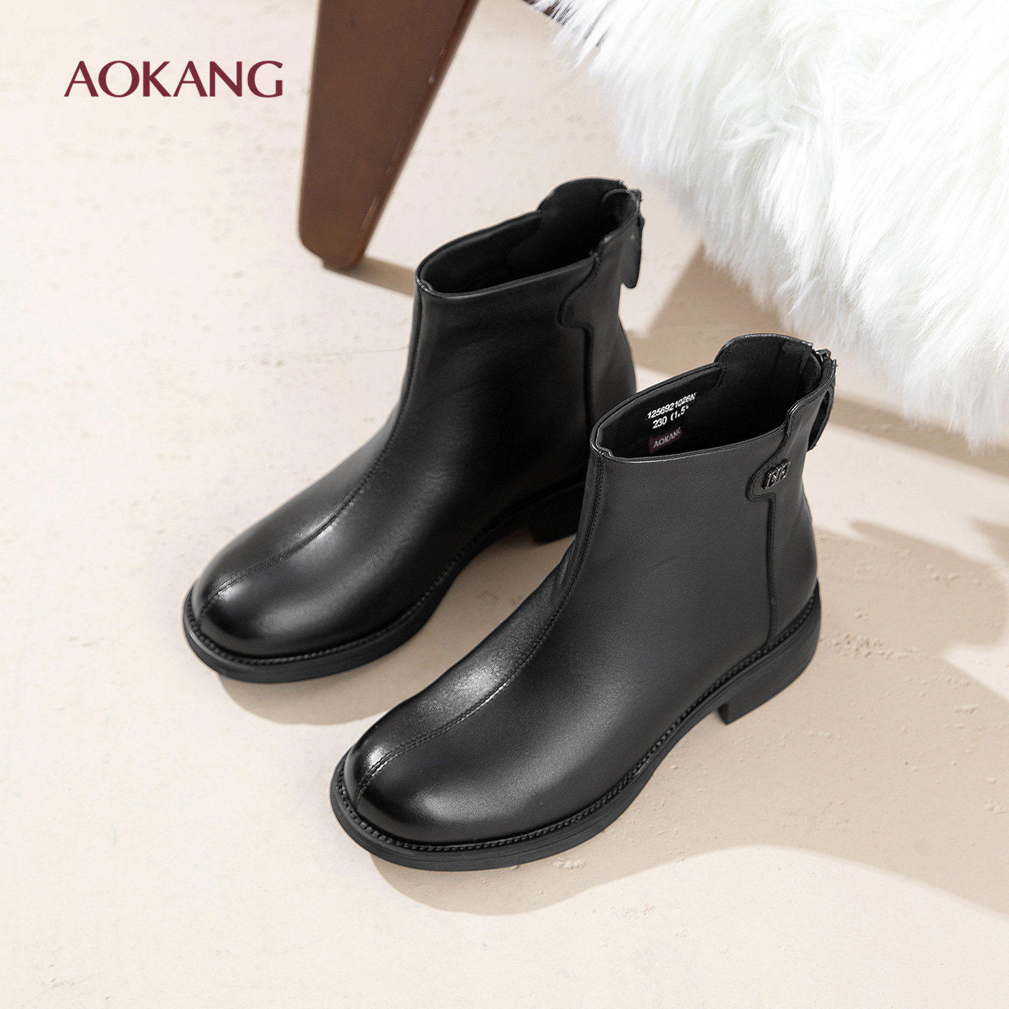 奥康女鞋2025年冬季新款气质加绒妈妈短靴真皮舒适时装靴保暖棉鞋